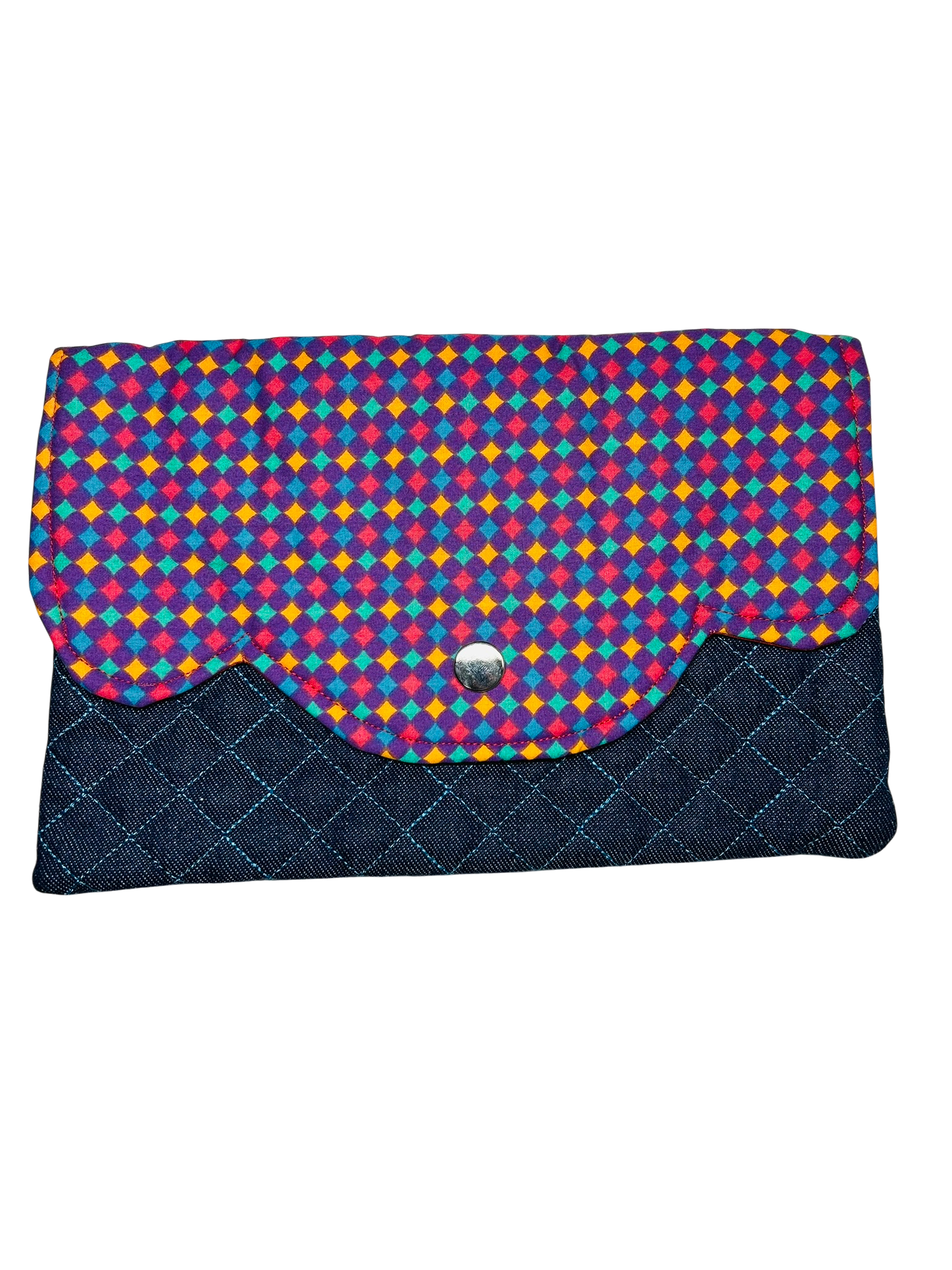 Carteira confeccionada em tecido tricoline 100% algodão. Trabalho em patchwork e botão de pressão.