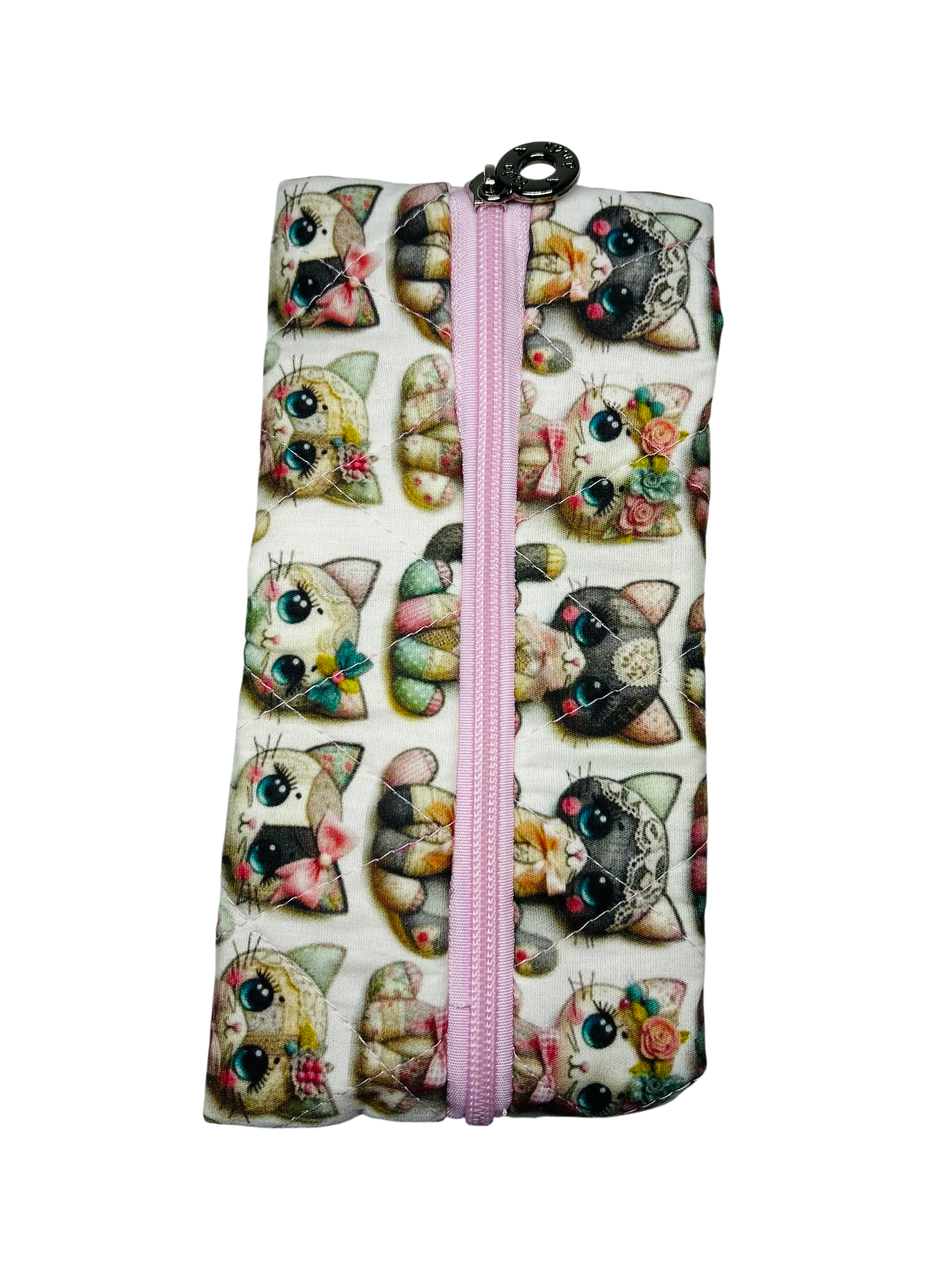 Estojo para guardar lápis, canetas ou quaisquer outros objetos que você quiser! Acolchoado e fechamento com zíper. Atrás possui elástico para prender no caderno ou livro. Uma fofura!