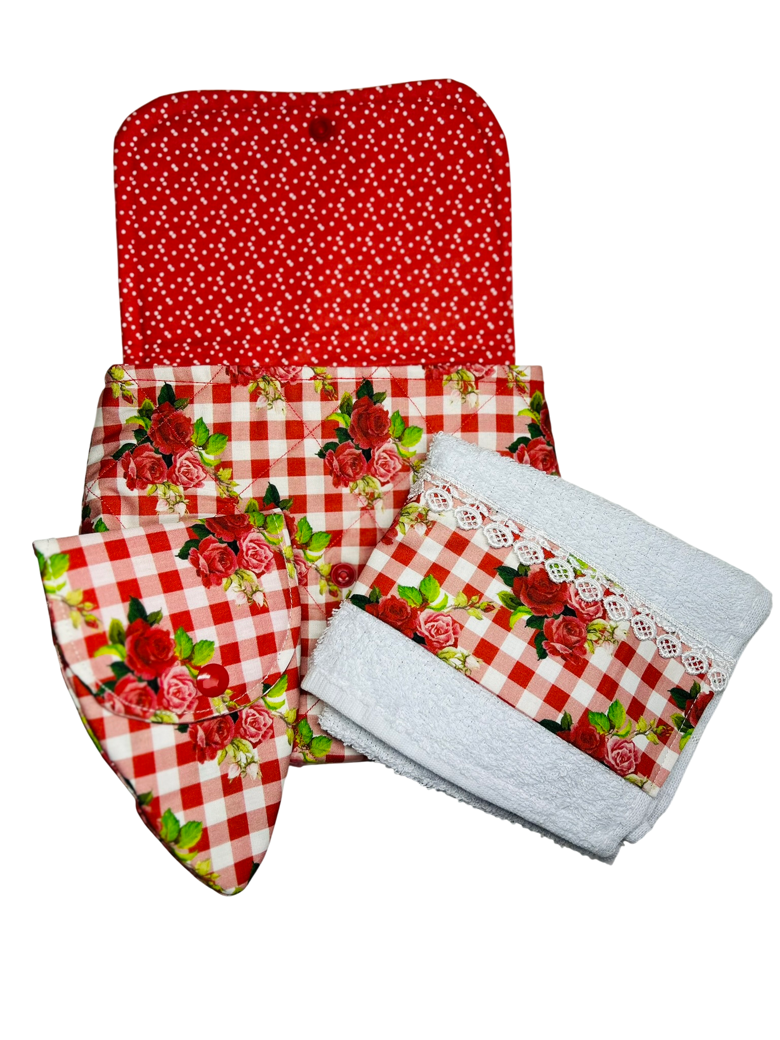 Kit manicure confeccionado em patchwork. Contém: 1 bolsinha em tecido 100% tricoline, 1 toalha e um porta alicate.