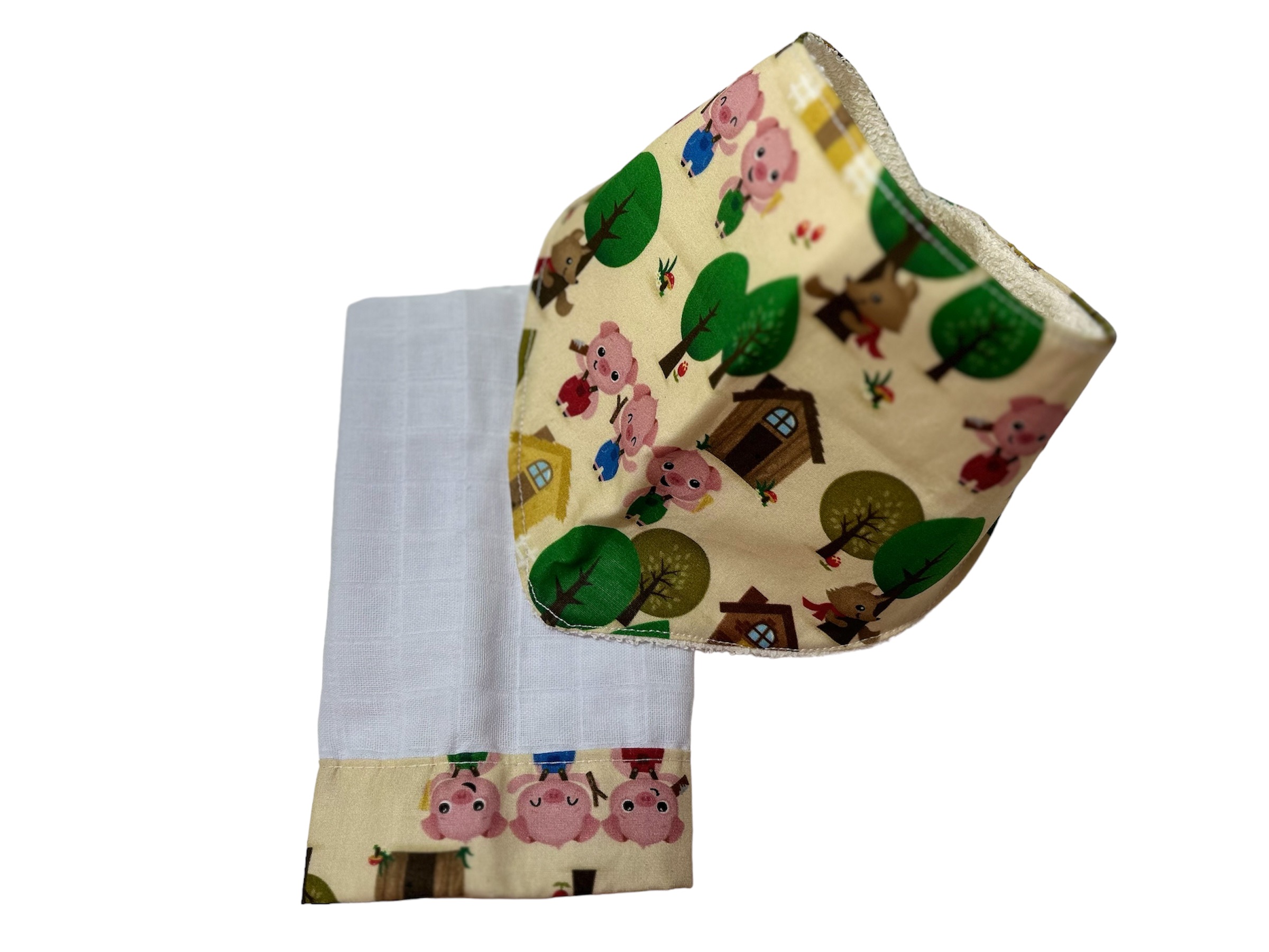 Babador Bandana 100% algodão. Fácil de lavar e super confortável. Acompanha fraldinha com a mesma estampa.
