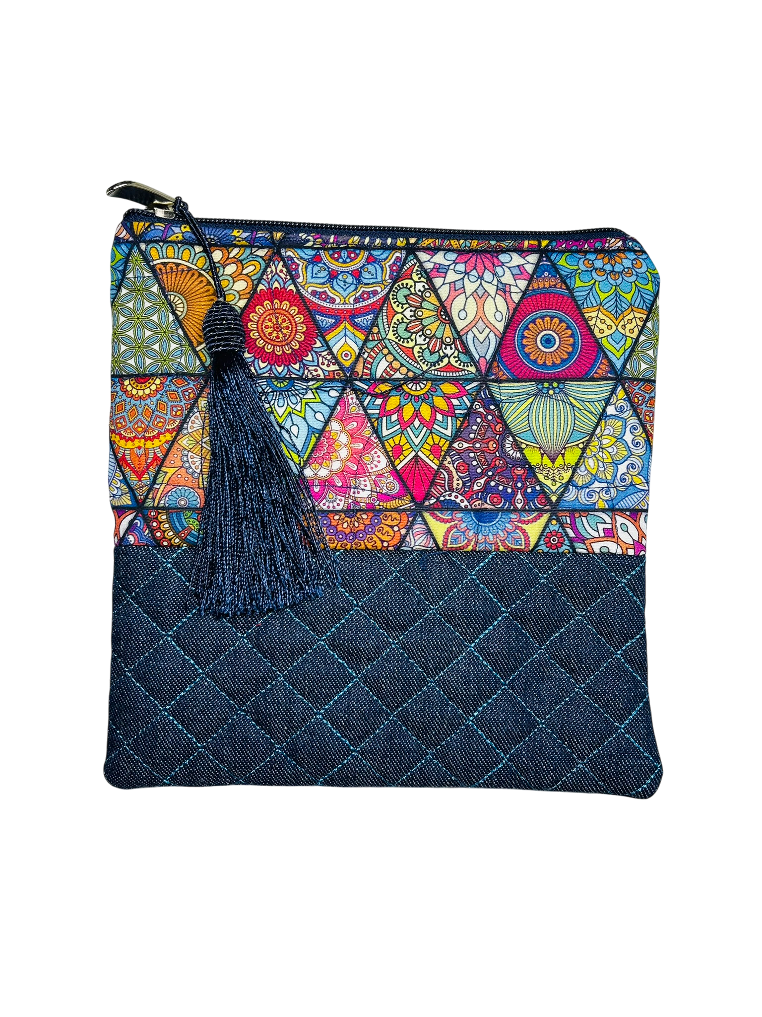 Necessaire para organizar as maquiagens, produtos de higiene, entre outros. Confeccionada em tricoline estampa digital quiltada.