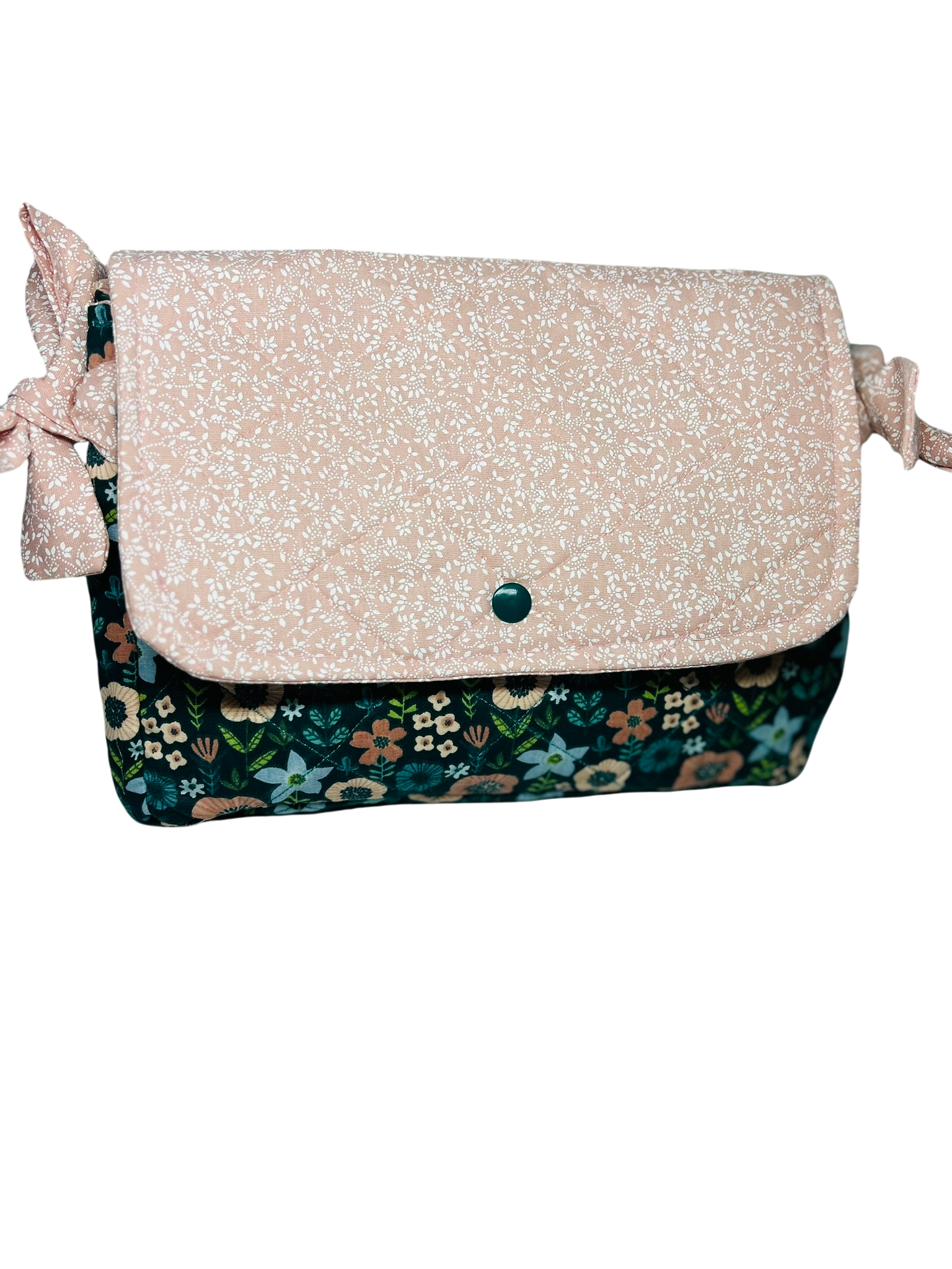 Necessaire para organizar as maquiagens, produtos de higiene, entre outros. Confeccionada em tricoline estampa digital quiltada com lindos laços ao lado.