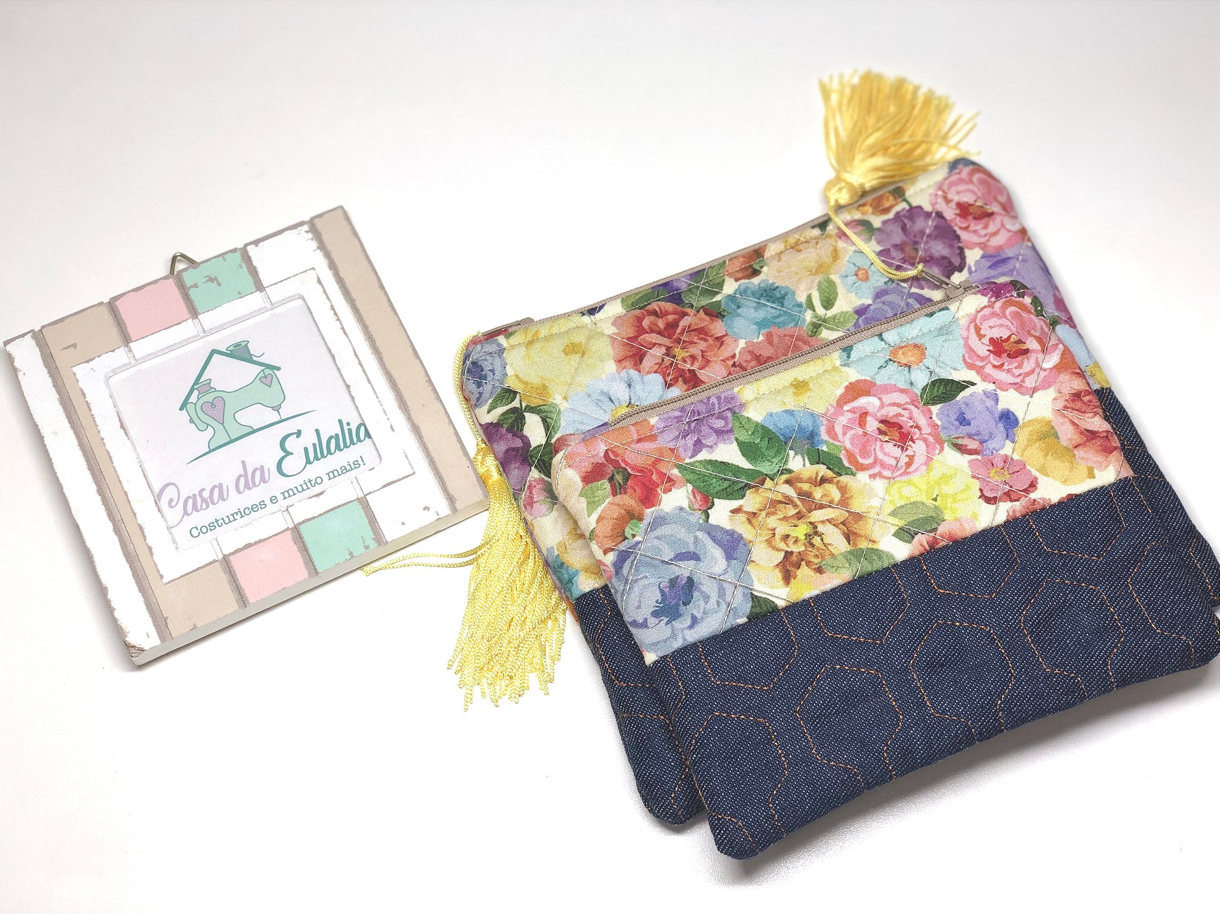 Kit necessaire para organizar as maquiagens, produtos de higiene, entre outros. Confeccionada em tricoline quiltada.