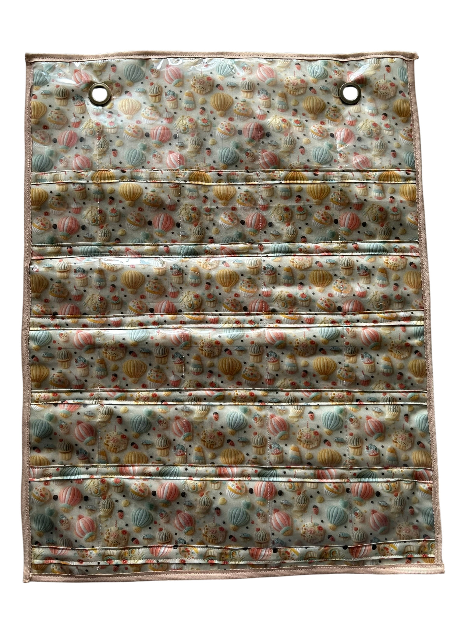 Confeccionado em plástico e tecido com estampa a escolher.