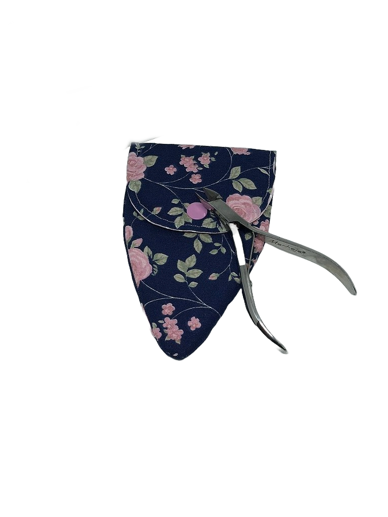 Porta alicate de unha, feito de tecido de algodão e acolchoado, fechamento por botão de pressão.