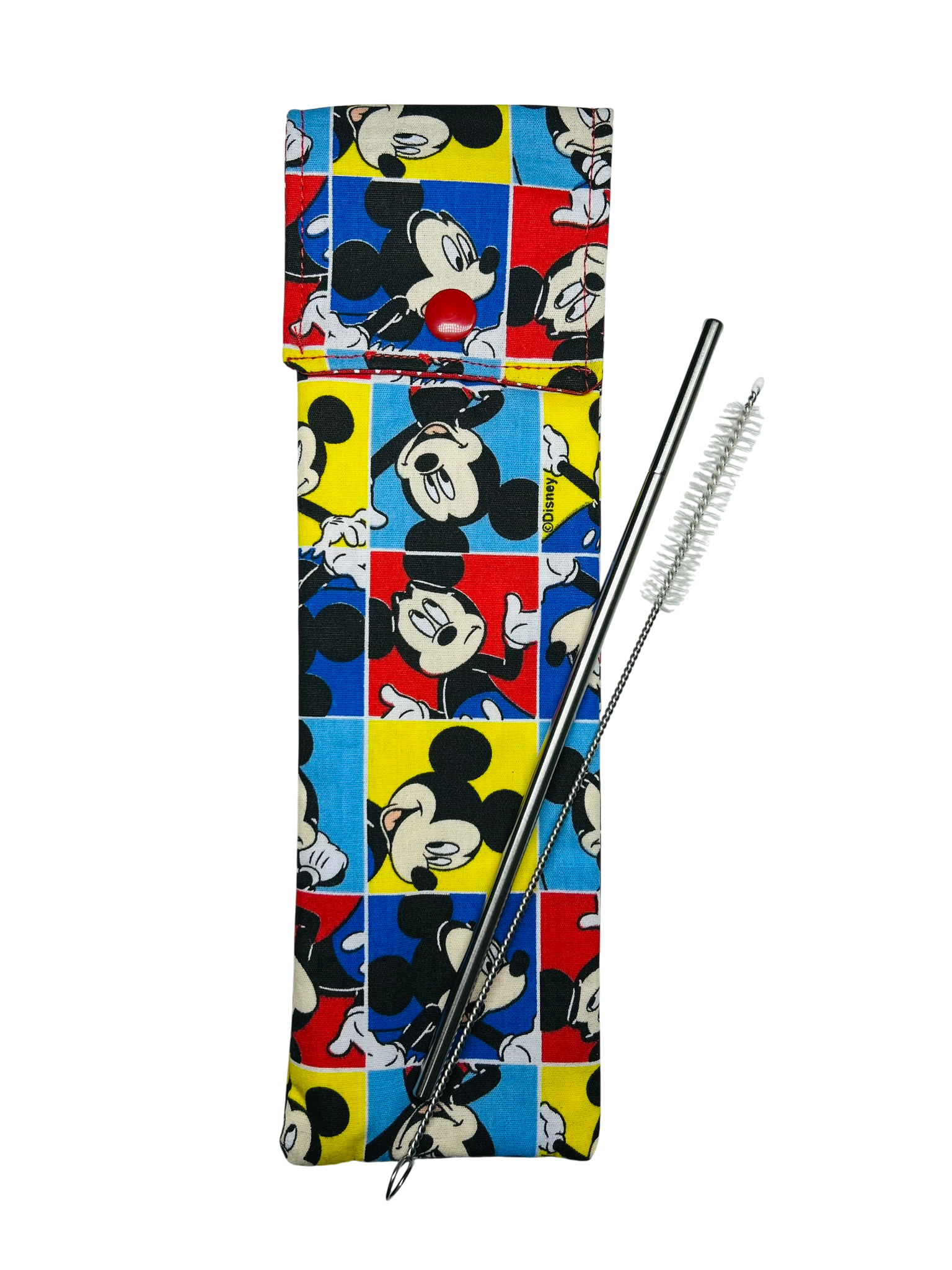 Bolsinha com canudo em metal e escovinha de limpeza.Confeccionada com tecido 100% tricoline e forrada com plástico para facilitar a limpeza. Ideal para manter na bolsa e respeitar o meio ambiente.