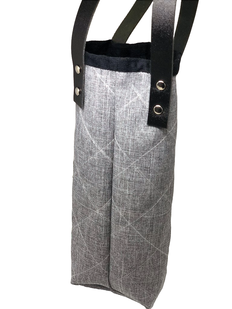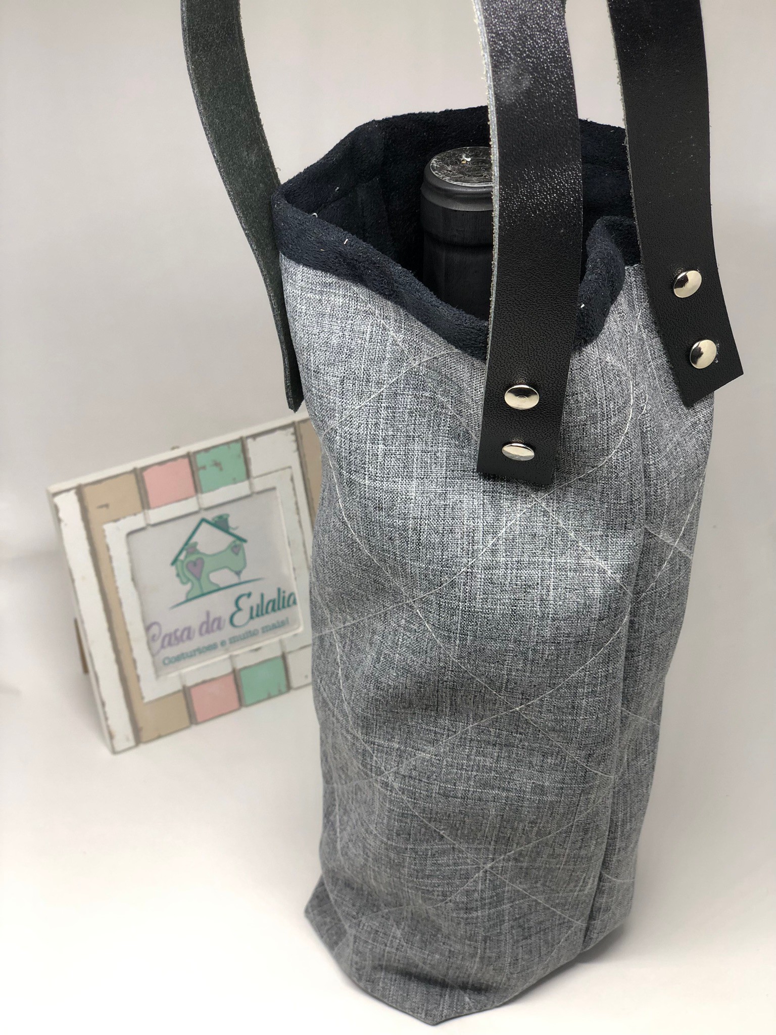 Porta Vinho em tecido. Parte externa em linho e parte interna em camurça. Com alça de couro para facilitar o transporte. Ideal para deixar aquele vinho maravilhoso pronto para presentear!