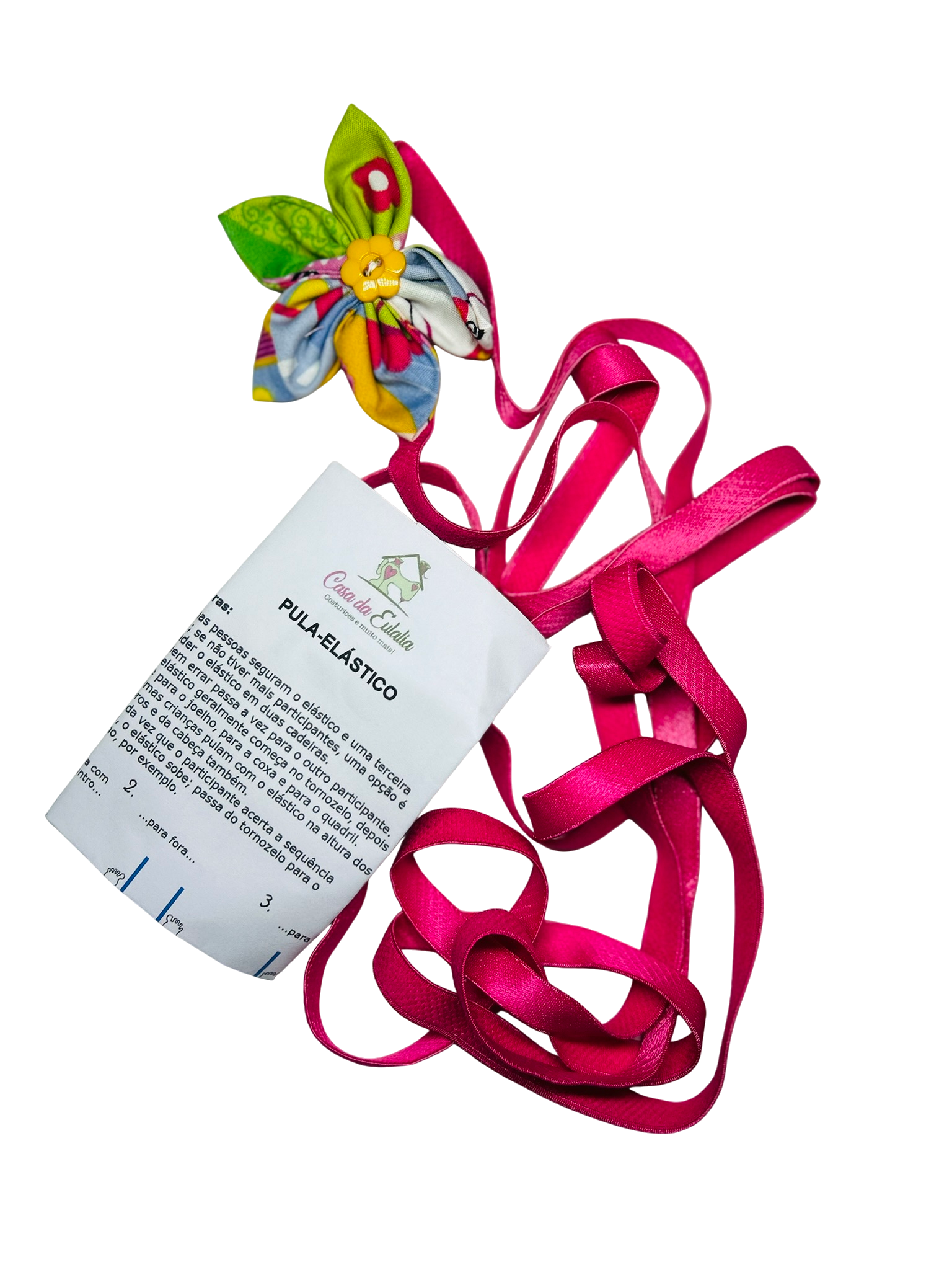 A brincadeira de pular elástico é muito popular entre as crianças. A Casa da Eulalia confecciona a brincadeira com elástico colorido embrulhado num lindo saquinho de tule. Ideal para lembrancinhas de aniversário e brincadeiras com as crianças!