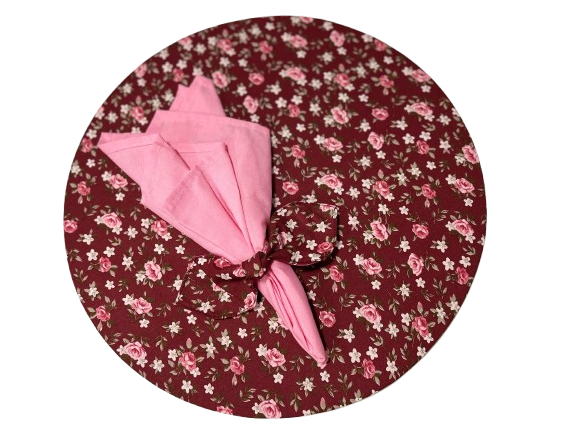 Compõe o kit: 4 capas de sousplat dupla face e 4 argolas de guardanapo modelo laço.
